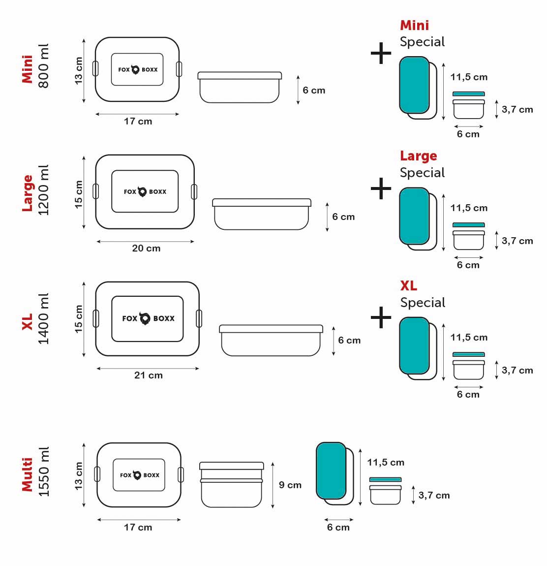 🦊 Maße: 19,5 x 14,5 x 6 cm - 1200 ml